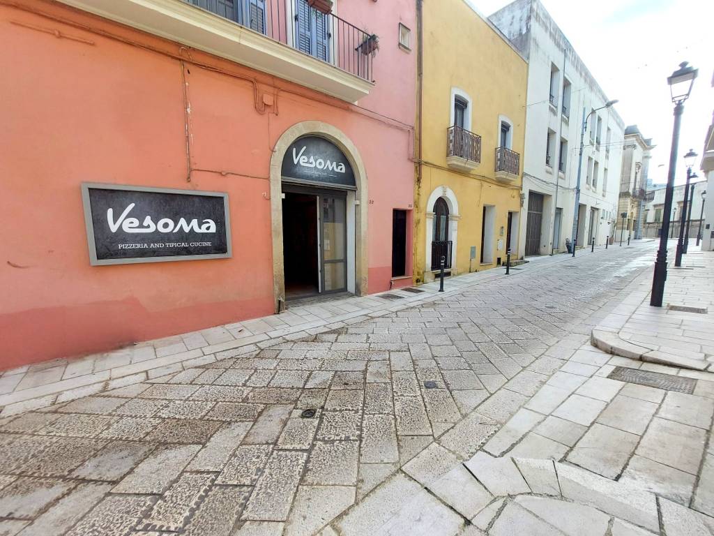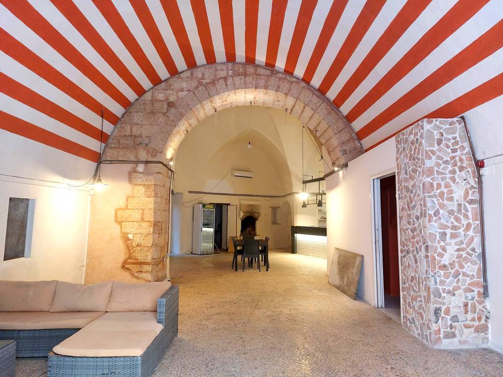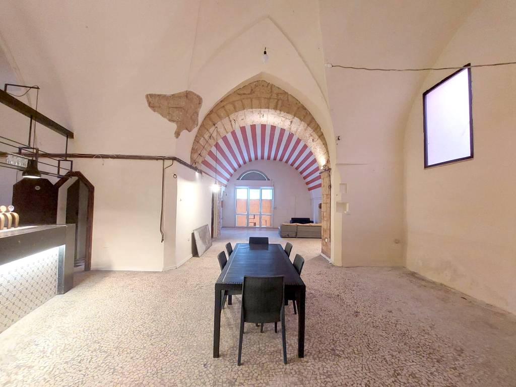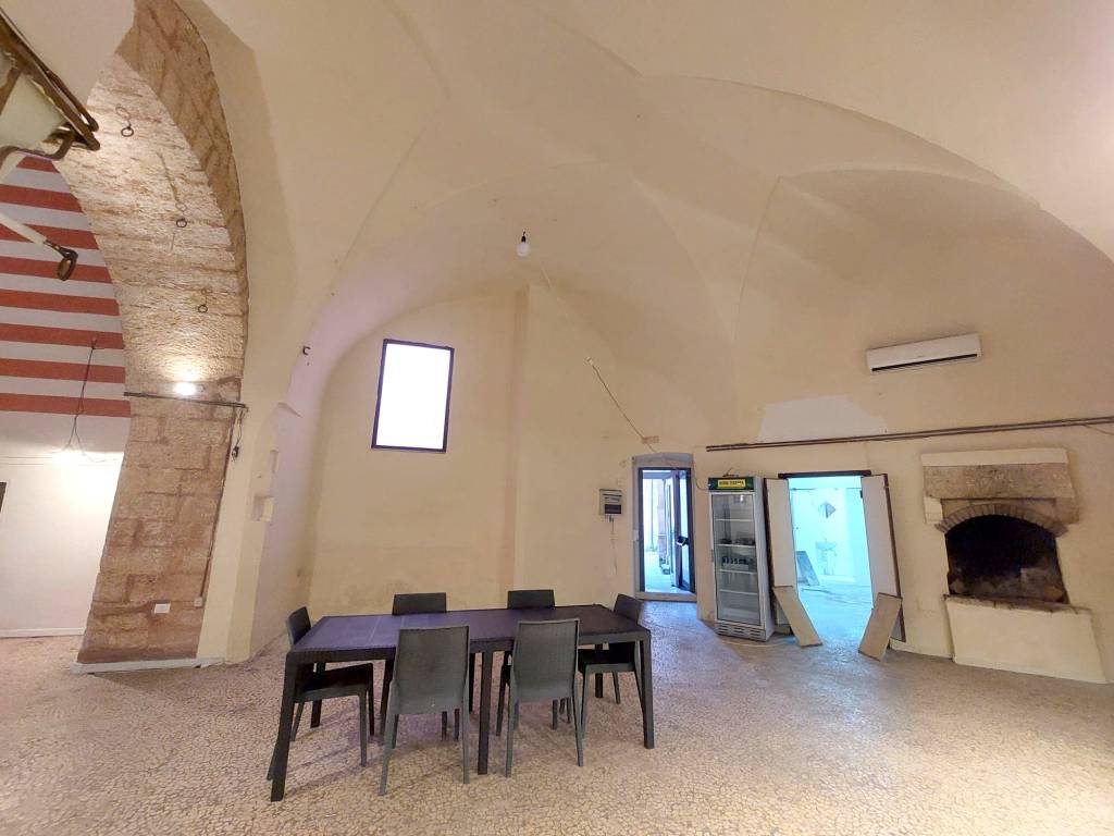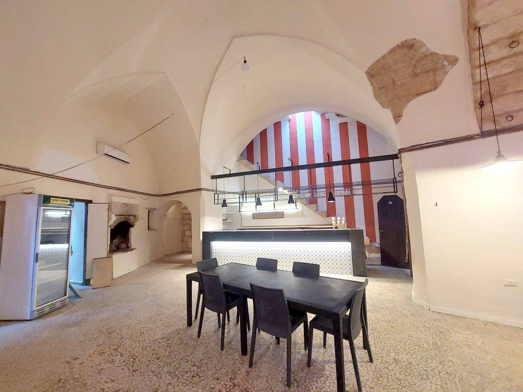 Locale commerciale in affitto situato in posizione centralissima, a due passi da Piazza Pisanelli e nel cuore del centro storico. L’immobile si trova al piano terra ed è facilmente raggiungibile, grazie alla sua posizione strategica. Il locale ha una superficie di circa 140 mq e dispone di doppio ingresso. Internamente si compone di un’ampia sala principale impreziosita dalle tipiche volte a stella salentine, due camini, ed un ambiente adibito a cucina. Sono presenti tre servizi igienici, di cui uno a norma per persone con disabilità , caratteristica fondamentale per attività aperte al pubblico. Il locale dispone di un vico comune e di uno spazio esterno, con la possibilità di richiedere le necessarie autorizzazioni per l’installazione di tavoli e sedie. Il locale è già allacciato alla rete del gas metano ed è dotato di caldaia. La distribuzione degli spazi e le caratteristiche strutturali rendono il locale ideale per l’avviamento di un’attività di ristorazione o per altre attività commerciali che richiedano ampi spazi ed una posizione di forte passaggio. C.E. “D”.