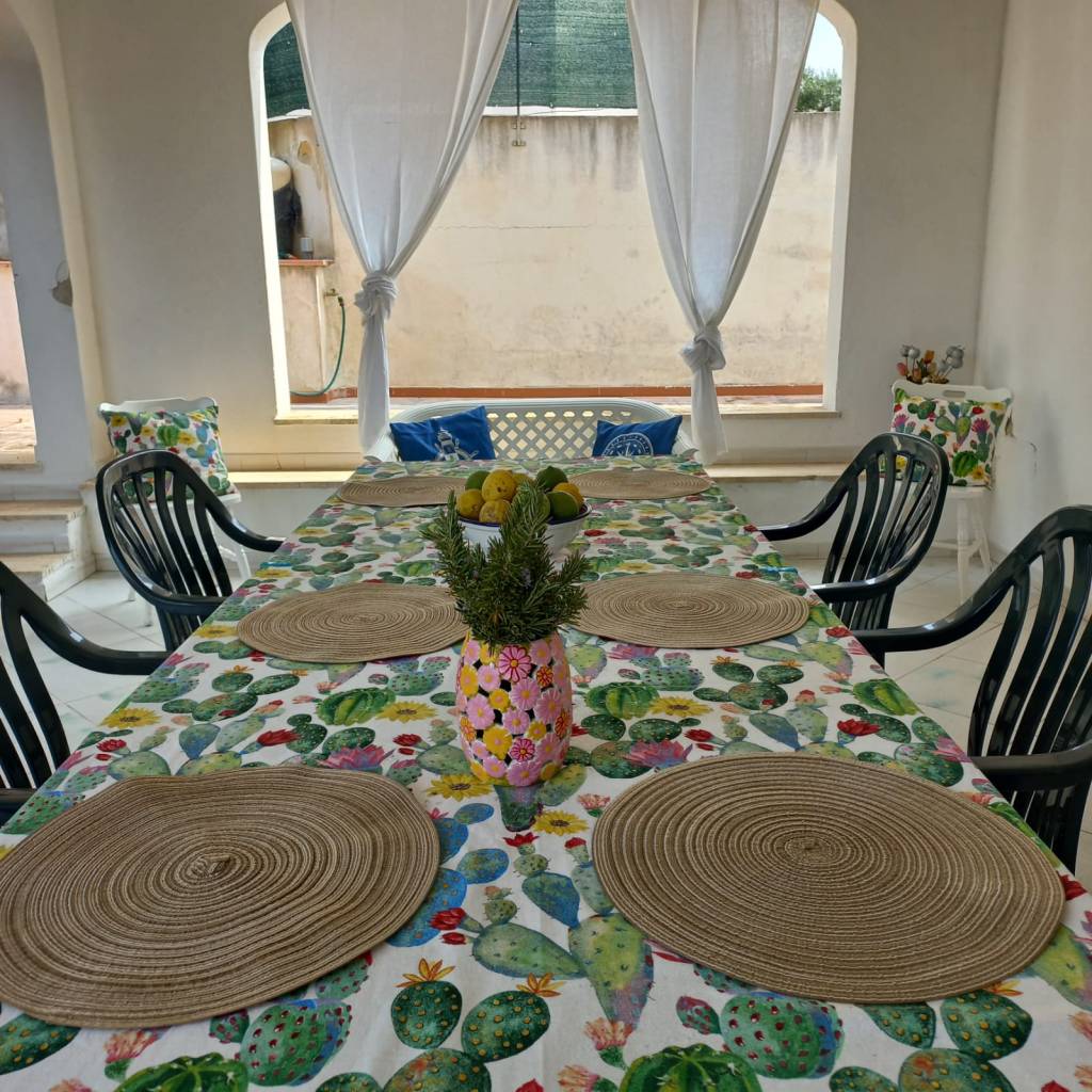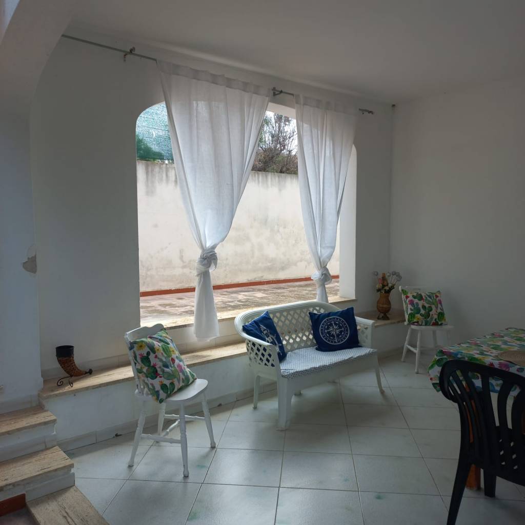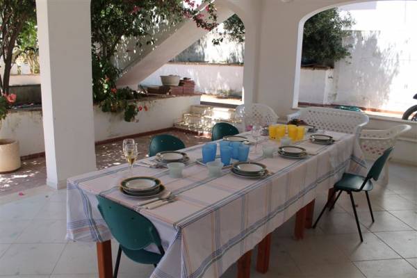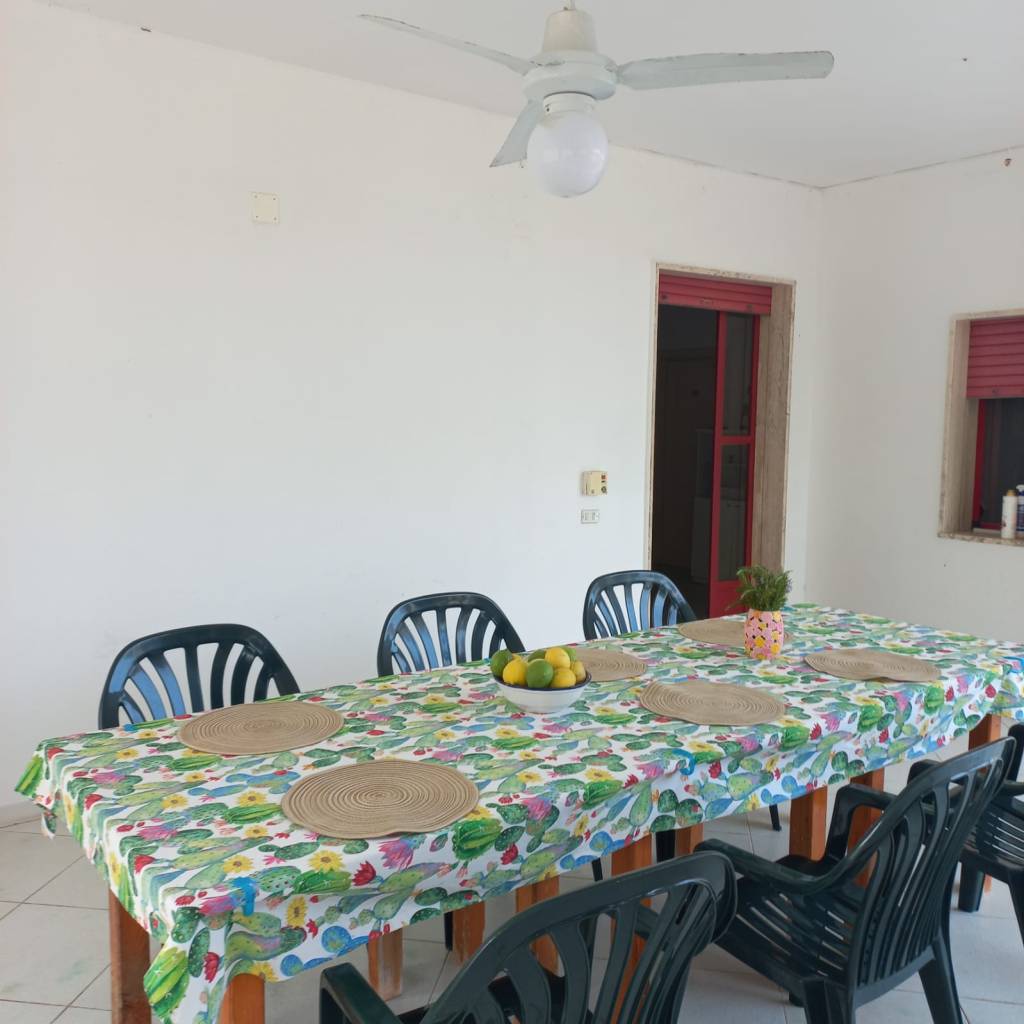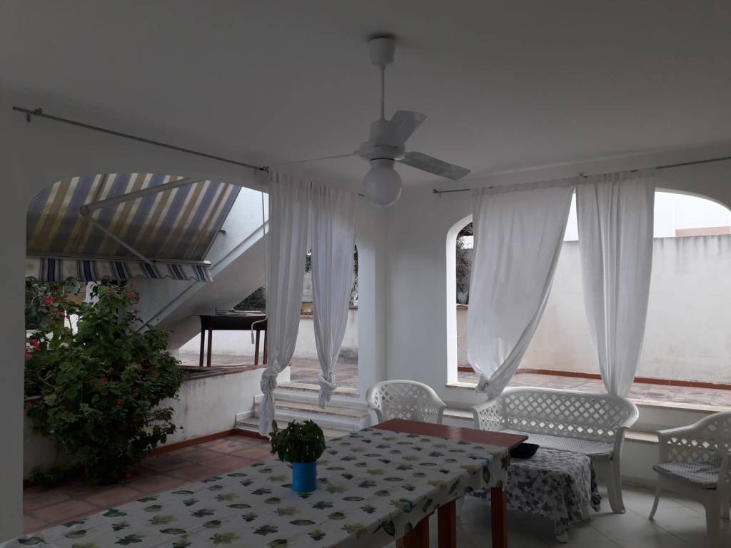 INTERNI: P.T.:(mq 80+ mq 80 porticati piano terra + mq 30 porticato 1º piano) ingresso/soggiorno/pranzo (con letto divano e lettino richiudibile), due camere da letto (una matrimoniale l'altra con due letti singoli), cucina, bagno con doccia e lavatrice. La casa à dotata di un condizionatore d'aria centrale. Portico antistante e retrostante con tavolo dove si può soggiornare e consumare i pasti all'aperto. Cortile con posto auto. Doccia esterna. Spazio esterno con giardino ed alberi. Arredamento confortevole.
