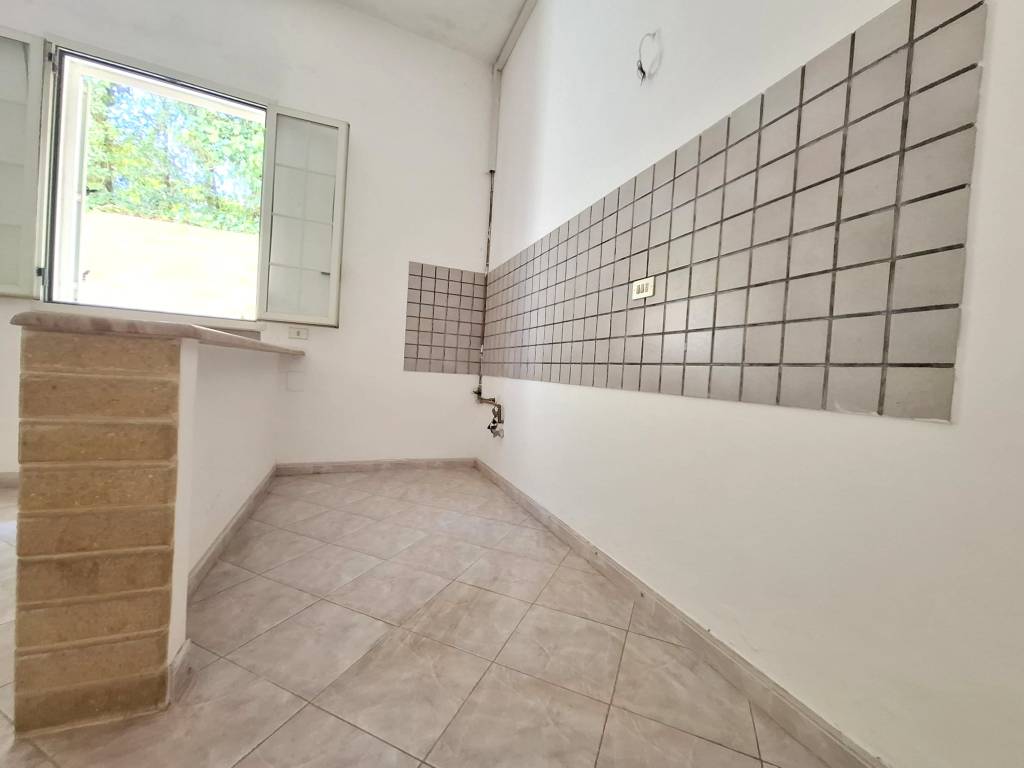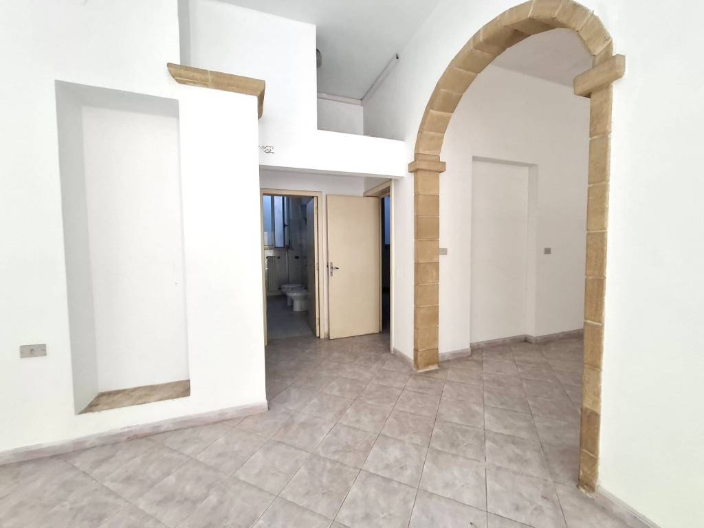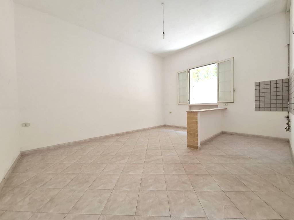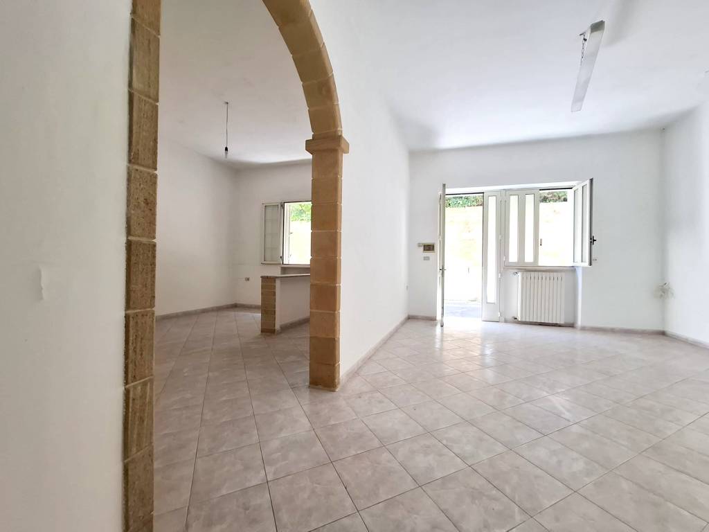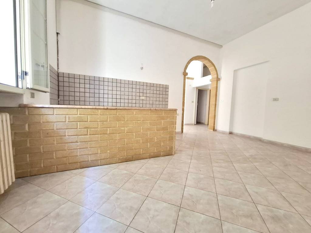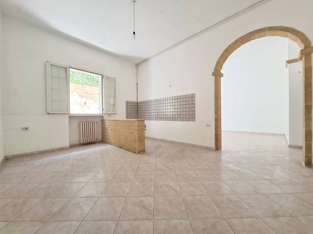 In zona centrale, a pochi metri dalla Piazza Don Tonino Bello, fabbricato indipendente al piano terra composto da ingresso/soggiorno, tinello con angolo cottura, due camere da letto, bagno. Antico vano volta a botte destinato a lavanderia e deposito. Allacci acqua, fogna, gas metano. Termoautonomo. C. E. "G".