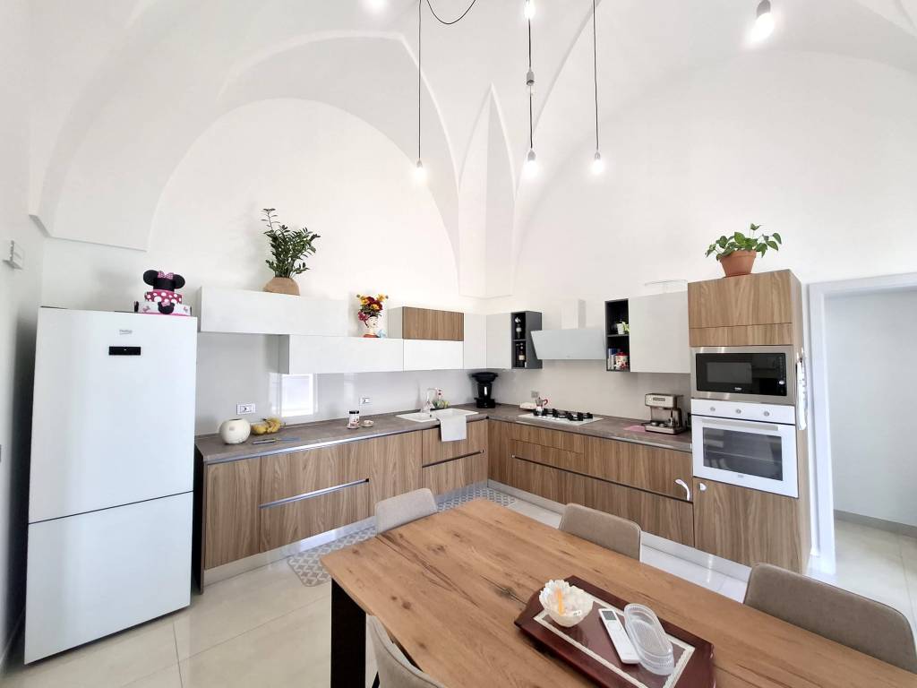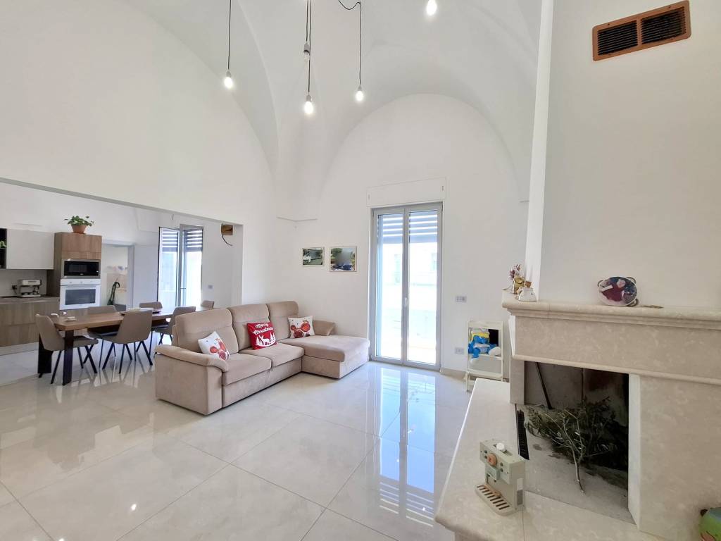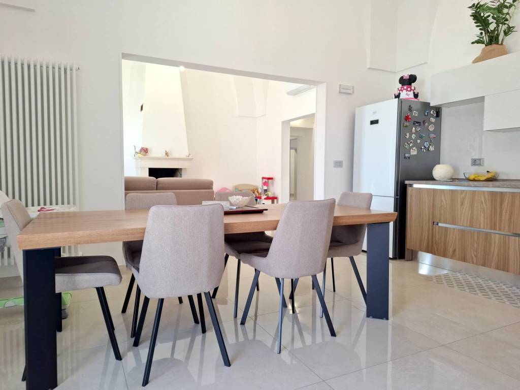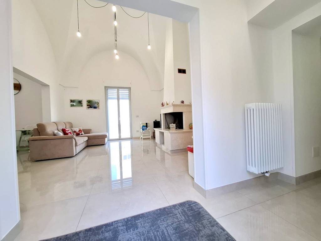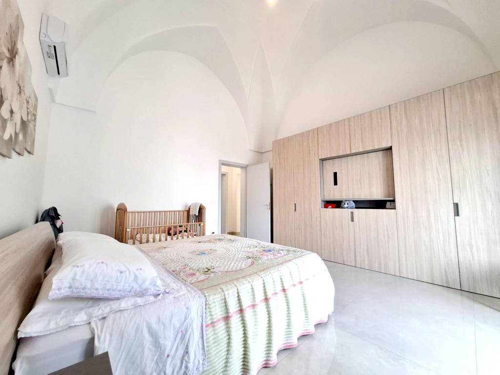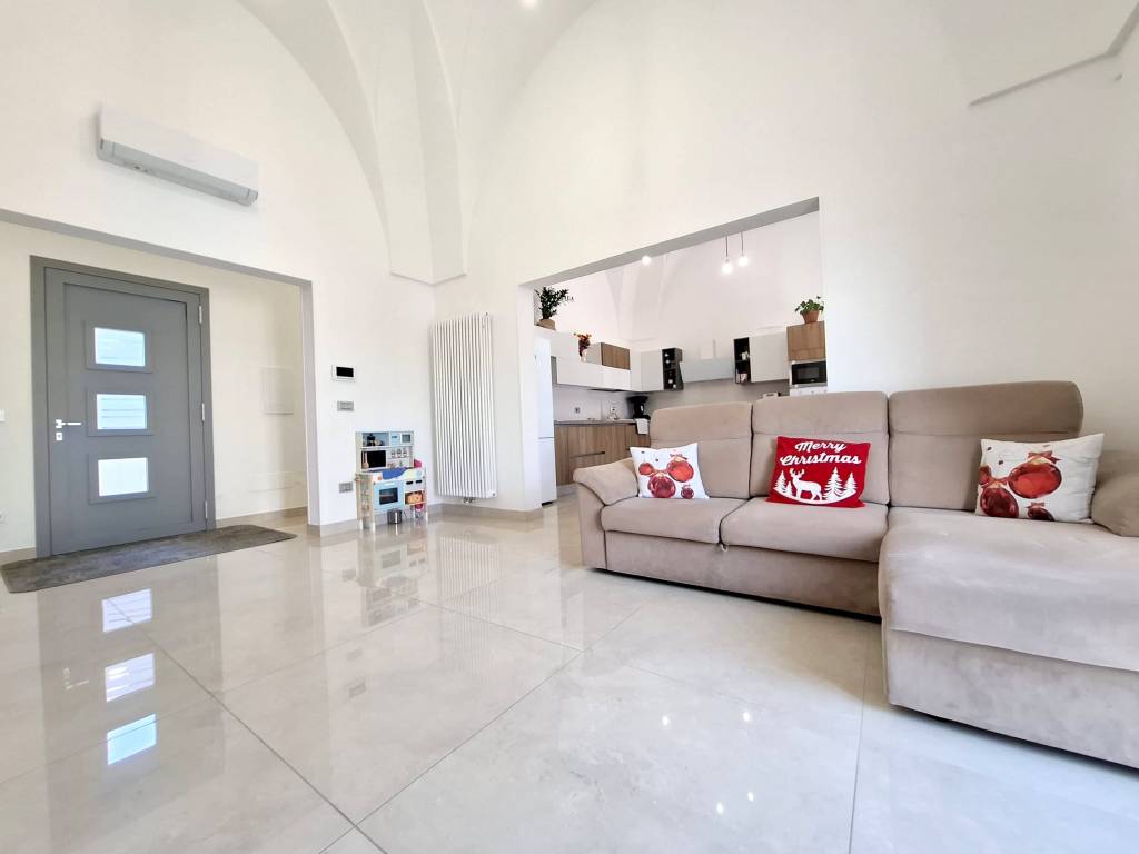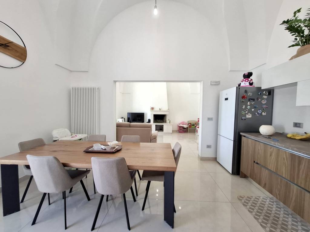 Fabbricato indipendente ben rifinito e ristrutturato nel 2022. L'immobile è caratterizzato dalle tipiche volte a stella e si compone da ingresso, ampio soggiorno con camino e uscita su un'ampia veranda, tinello con angolo cottura ben attrezzato, bagno per la zona giorno, disimpegno, due camere da letto, una con bagno in camera e ripostiglio (ideale per cabina armadio) e lavanderia. Termoautonomo e ambienti climatizzati. Cortile antistante con autorizzazione per la copertura con un pergolato. Area solare di proprietà esclusiva con installato un impianto fotovoltaico di 6 kw. L'immobile si vende completo di arredamento ed è ideale per chi cerca una soluzione nuova chiavi in mano, senza perdersi nella burocrazia e nei lavori di ristrutturazione. C.E. "B".