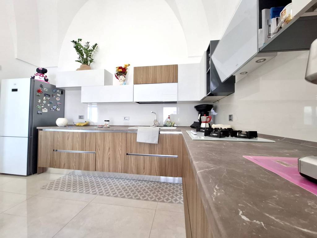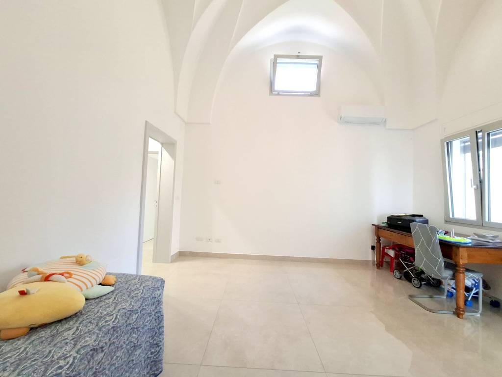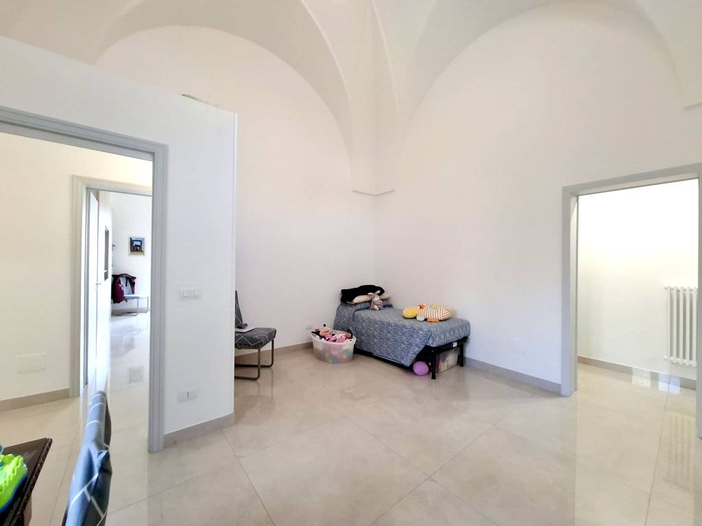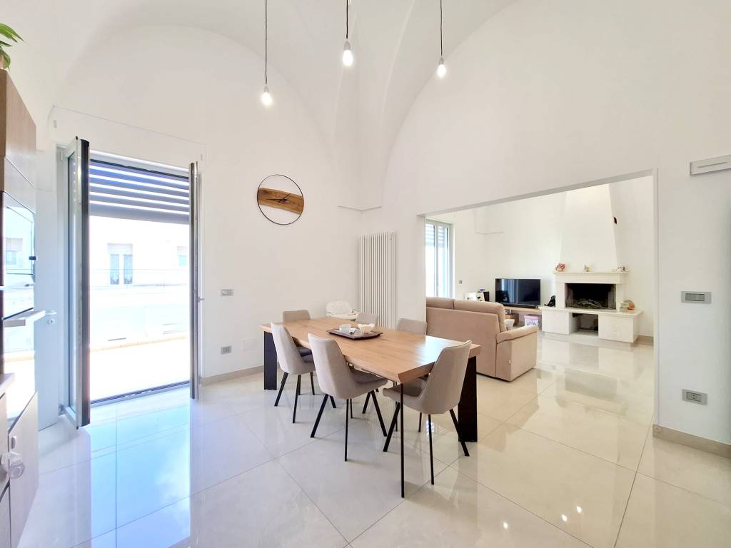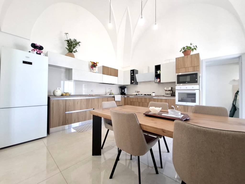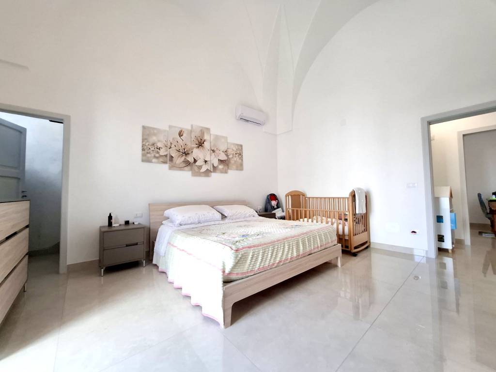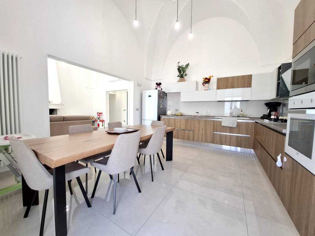 Fabbricato indipendente ben rifinito e ristrutturato nel 2022. L'immobile è caratterizzato dalle tipiche volte a stella e si compone da ingresso, ampio soggiorno con camino e uscita su un'ampia veranda, tinello con angolo cottura ben attrezzato, bagno per la zona giorno, disimpegno, due camere da letto, una con bagno in camera e ripostiglio (ideale per cabina armadio) e lavanderia. Termoautonomo e ambienti climatizzati. Cortile antistante con autorizzazione per la copertura con un pergolato. Area solare di proprietà esclusiva con installato un impianto fotovoltaico di 6 kw. L'immobile si vende completo di arredamento ed è ideale per chi cerca una soluzione nuova chiavi in mano, senza perdersi nella burocrazia e nei lavori di ristrutturazione. C.E. "B".